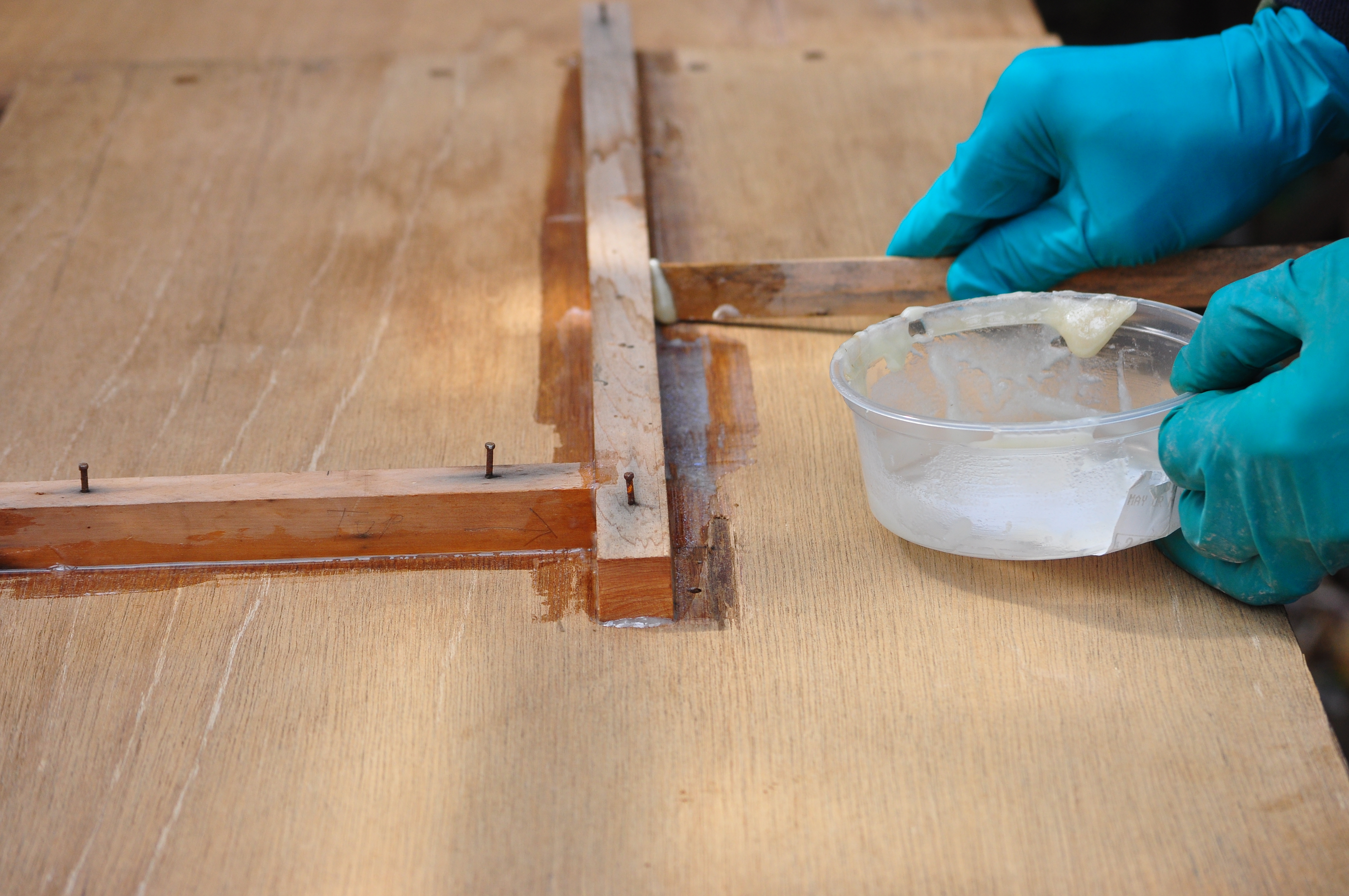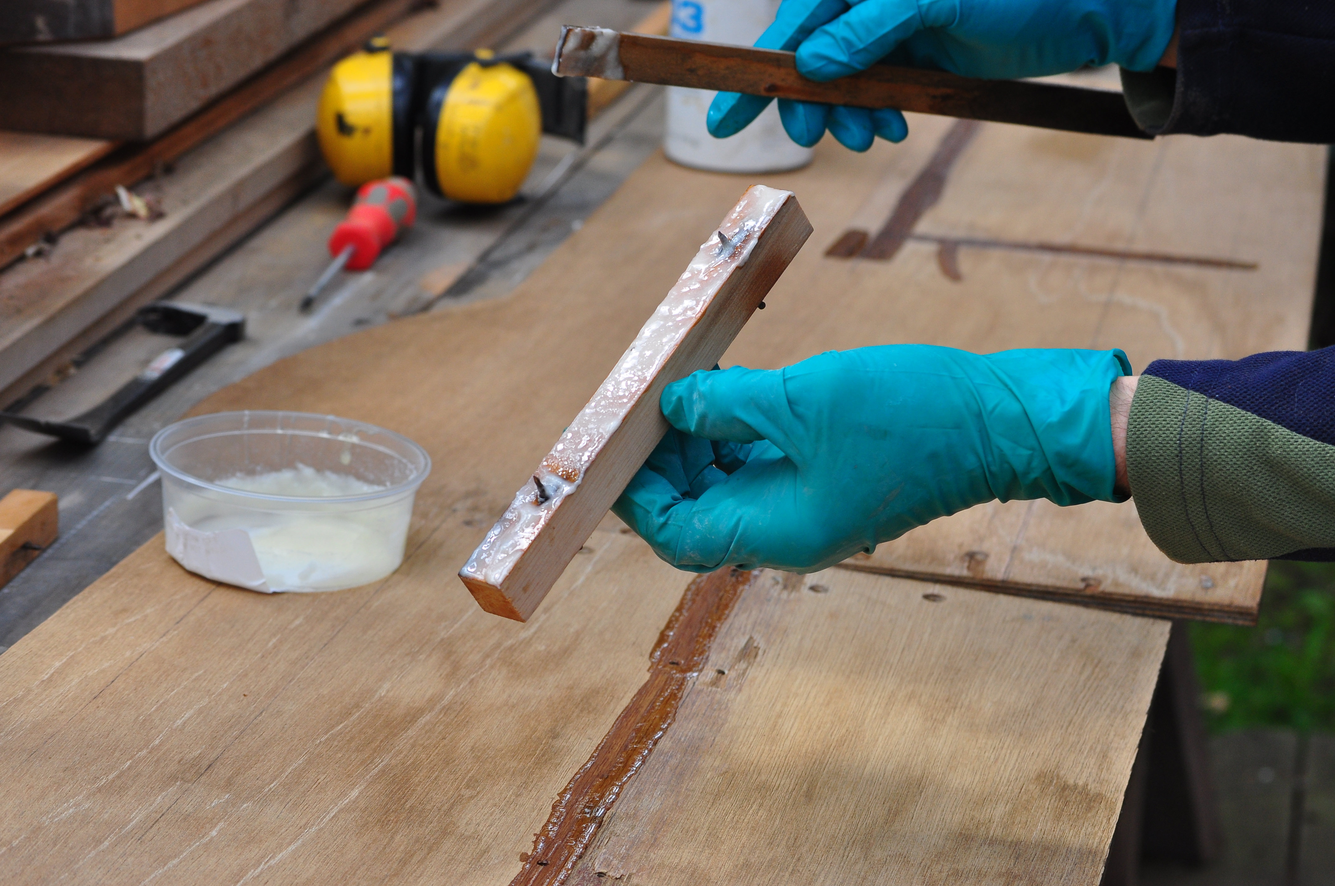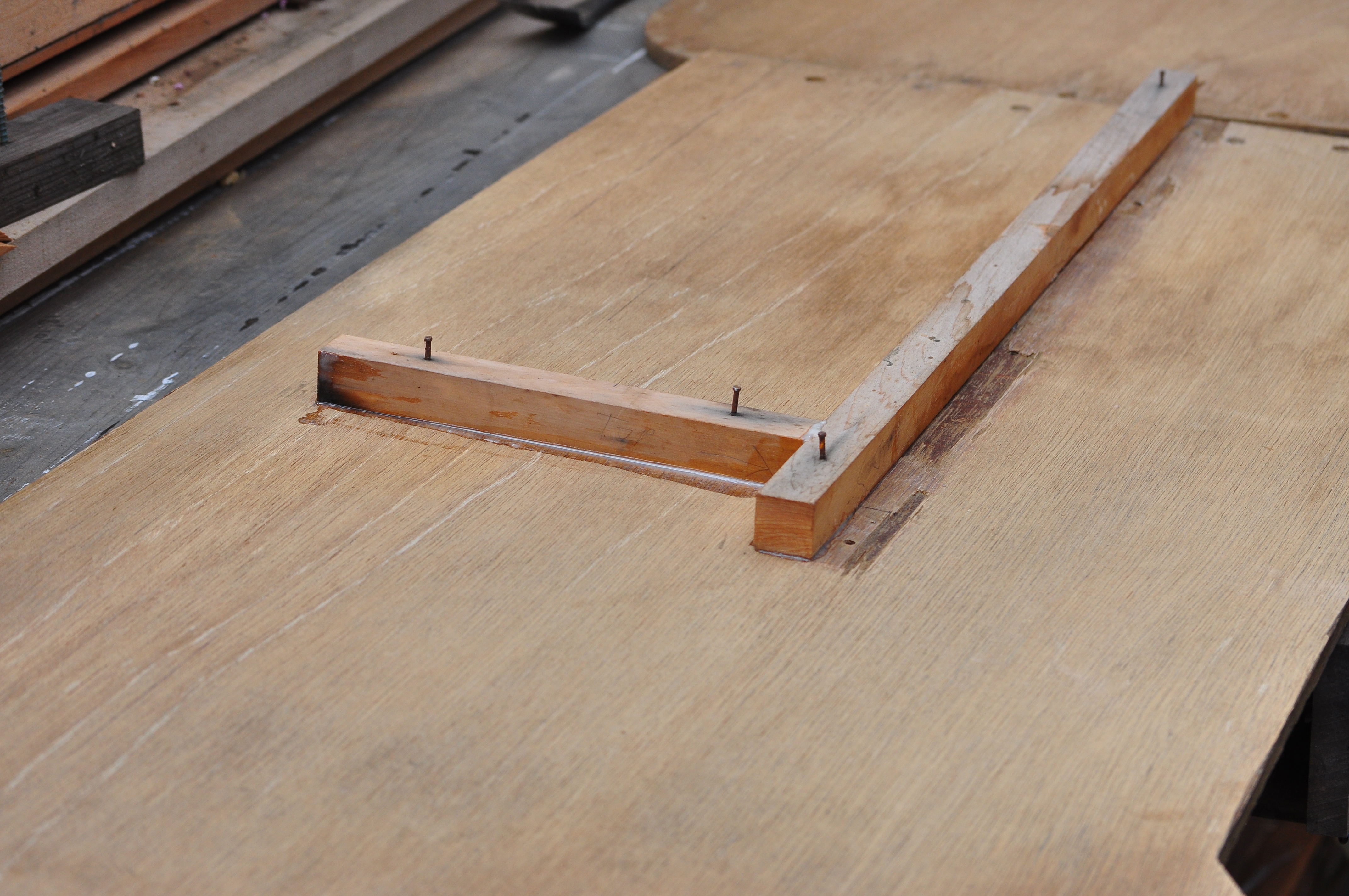 Today’s job was to glue up the centerboard casing. He’s done this once before and then discovered his measurements were wrong (he forgot to include the thickness of the keel plank). Fingers crossed it’s second time lucky!